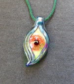 Glass eye pendant with satin cord of your choice. Hand made in USA boro white flecked red iris wi...