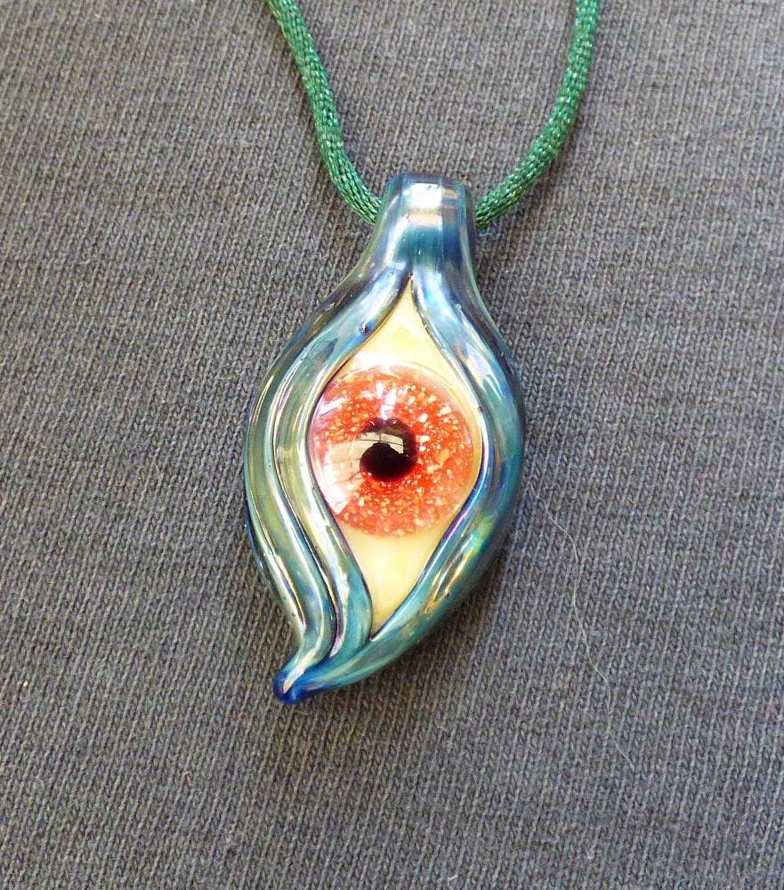 Vertical slit glass eye pendant. Handmade by me with borosilicate/pyrex glass.