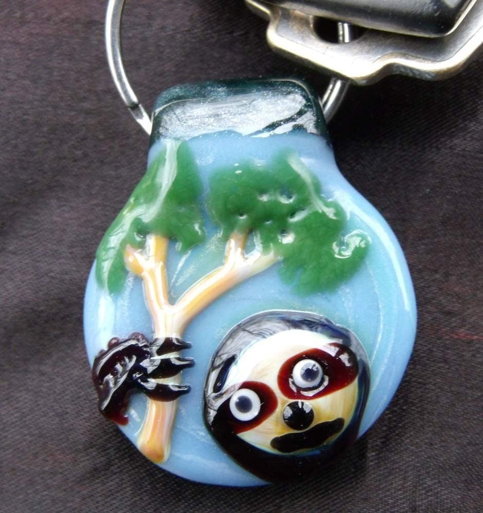 Original product name: Handmade in USA, pyrex glass sloth keychain / pendant / ornament gift for her gifts jewelry ornaments home decor wall bag backpack keychain